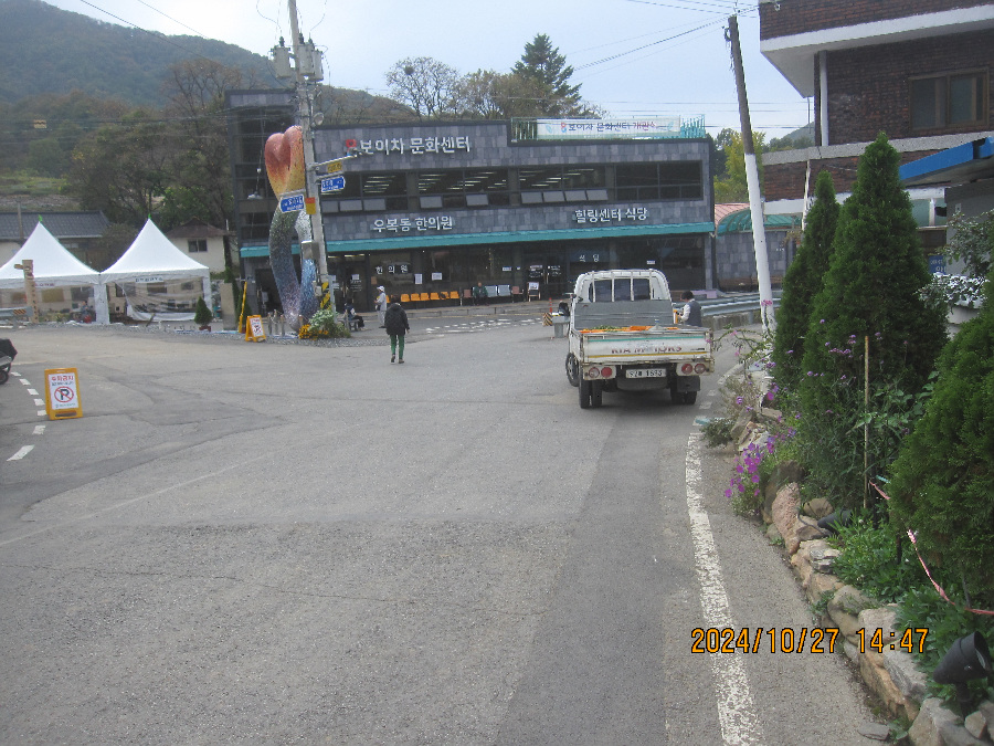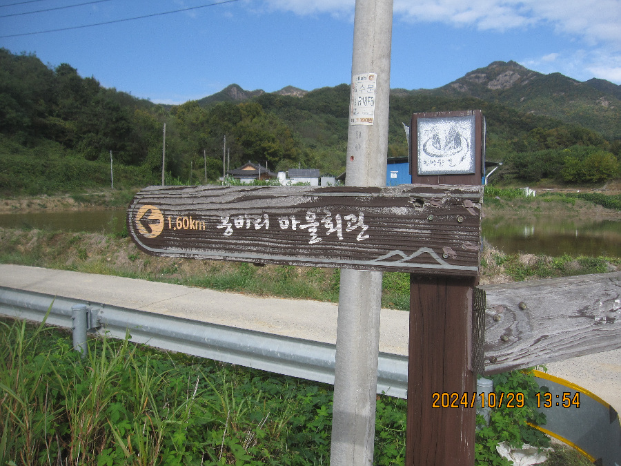 * 2일전 상주시 화남면 금산리서 출발하여 천택산거쳐 임곡리-적암리에 도착했다. 2일 후인 오늘 2024년10월 29일 보은군과 상주경계인 구병산 입구 적암휴게소를 출발하여 야산을 힘들게 2산 넘고 3번의 고속도로 지하도를 통과하였으며 적암리-갈평리-수문리-불목리-갈평리 등 5곳의 보은군 마을을 이동했다. 혼자 하는 등산이라 체력이 저조하고 힘이들어 봉비리까지만 이동했는데 봉비리 마을 중간의 마을회관을 지나쳐 마을입구 정자와 마을 유래비에 도착하여 마지막을 알바로엉뚱하게 마쳤다. 다음은 일부러 봉비리 마을회관을 찾아서 나머지 2km 남은 구간을 마무리하고 말티재 넘는길 2구간의 일부를 답사예정이다. 구간에 딱 맞추어 다니면 좋지만 혼자이고 교통이 불편하며 체력이 저조하여 다소 깔끔하지 못하게 둘레길을 다녀야 한다. 지난번에는 버스를 타서 경제적으로 이동했지만 오늘은 봉비리-적암리 주차한곳 사이를 관기택시를 이용했다. 택시기사님이 도로우측을 가르키며 우측동네가 가수 태진아 동네이고 자기 친구라고 하여 잠시 흥미를 느겼다.