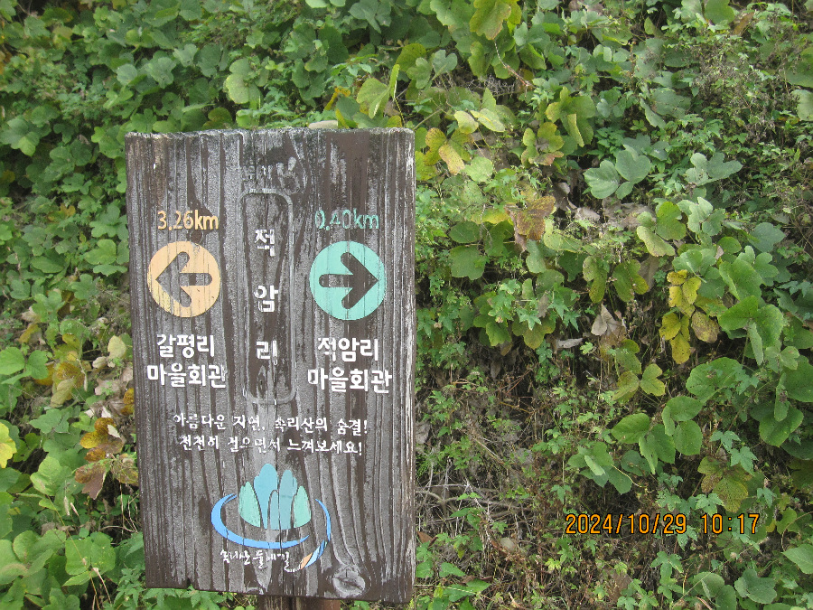 갈평리 마을회관-마을안으로 진입하니 미로 같아 허둥대며 이리저리 오릅니다. 이정표 발견. 잠시 불안