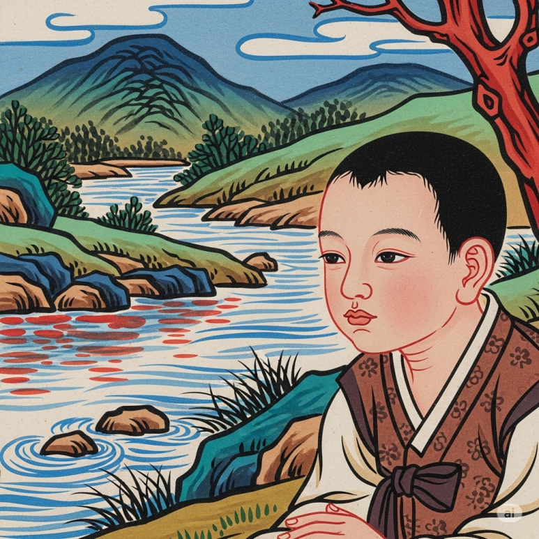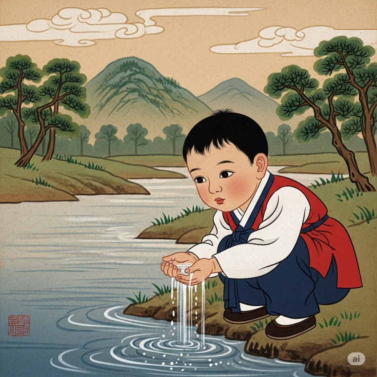 어느 날, 한 소년이 강가에서 물을 뜨다 문득 궁금해졌습니다.
