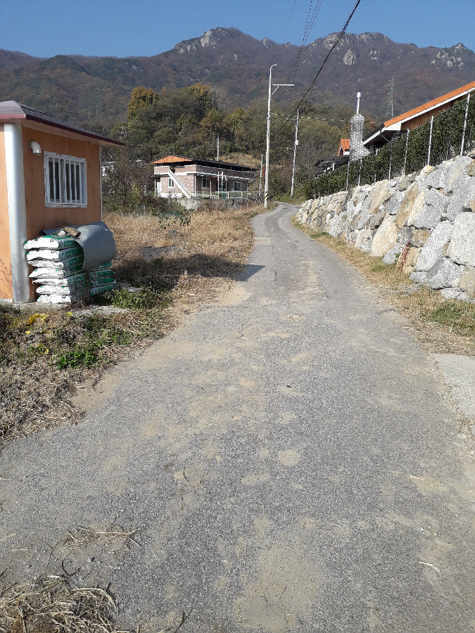 임도겸 농로가 이어지는데 동네에서 1키로 미터되는 임도끝까지 차로 가도 되지만 걸어서 오른다.