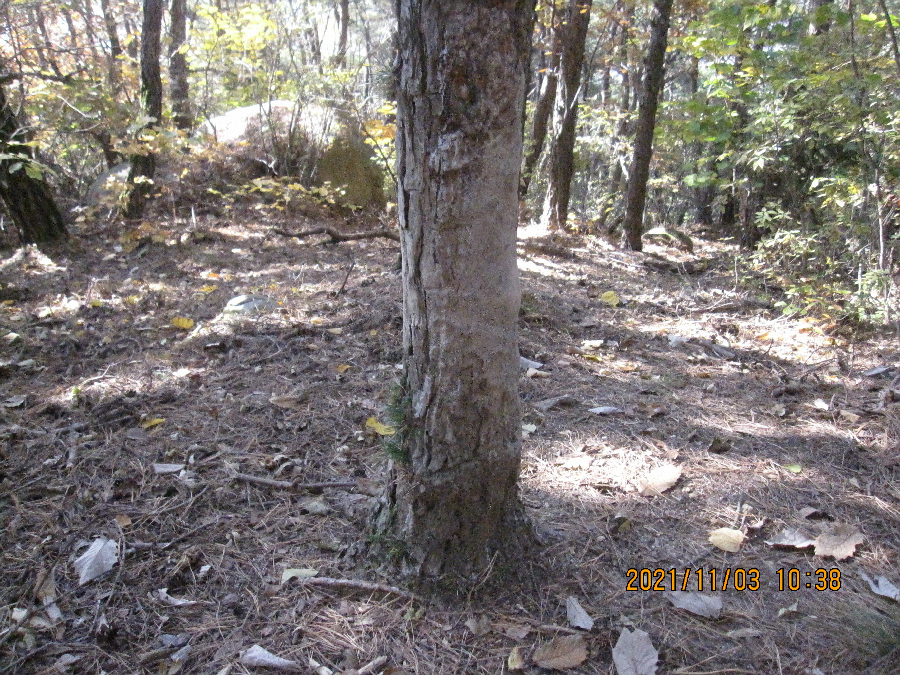 죽은 나무가 등산로를 꽉 막고있다. 진달래-싸리나무가 빽빽하여 등산로 구별이 안되어 짐직으로 오릅니다.