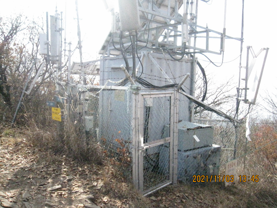 정상에는 1명의 등산인이 쉬고있고 산불초소에는 감시인이 문을 닫고 근무하네요.