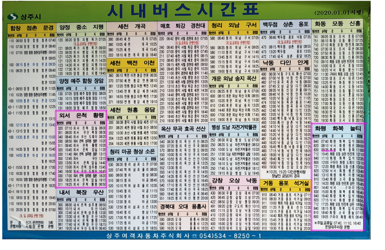 참고로 상주시내버스시간표 올립니다.