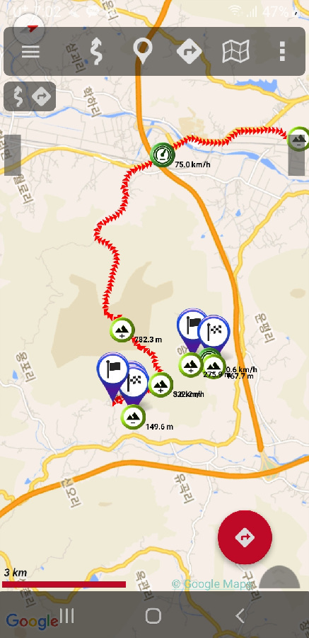 낙동 비룡리에서 출발항여 남부초등까지 걸어간 코스의 오룩스 맵
